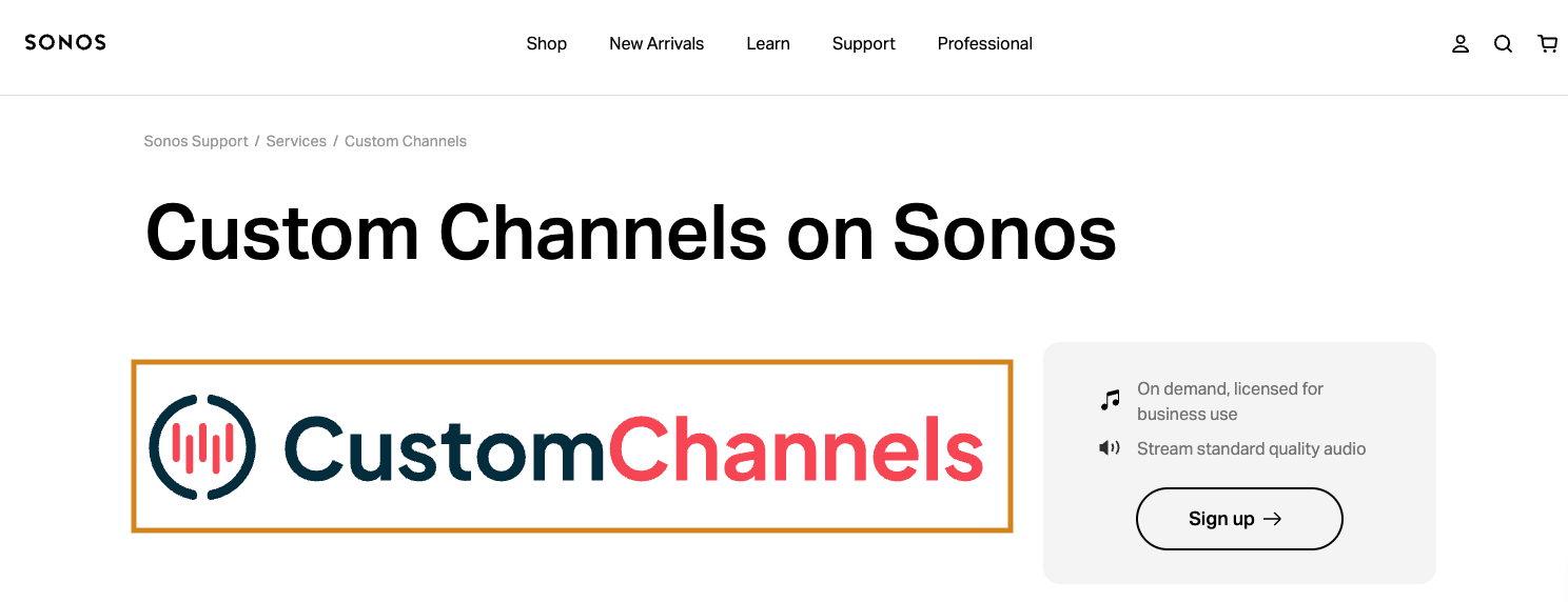 Within the Sonos Support page, the full logo is used as a banner display above a service's FAQ page. This image is hosted by Sonos, not within the Sonos app.